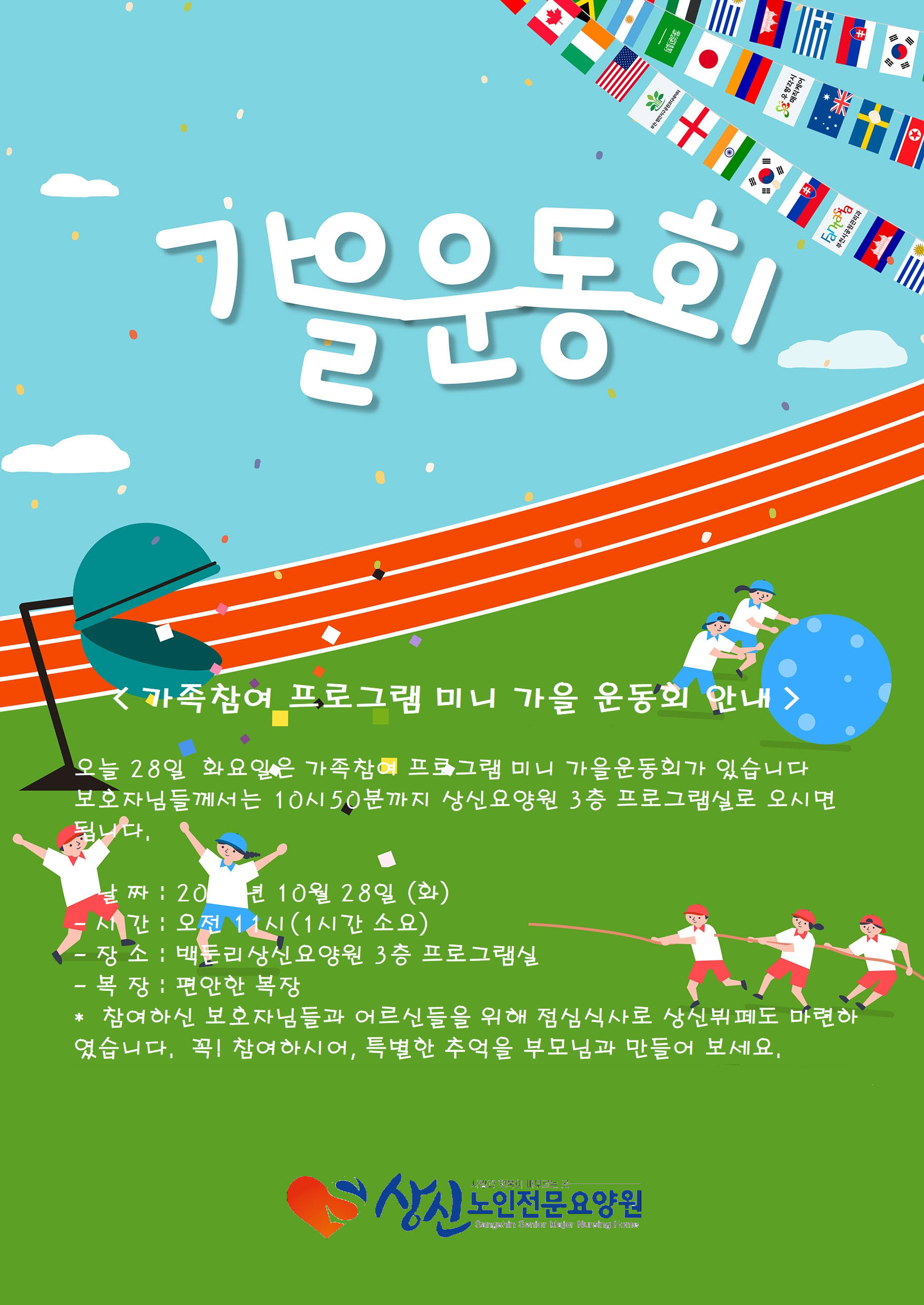 저희 백둔리상신노인전문요양원에서 어르신과 보호자님이 함께하실 수 있는 가을 운동회를 진행하고자 합니다.