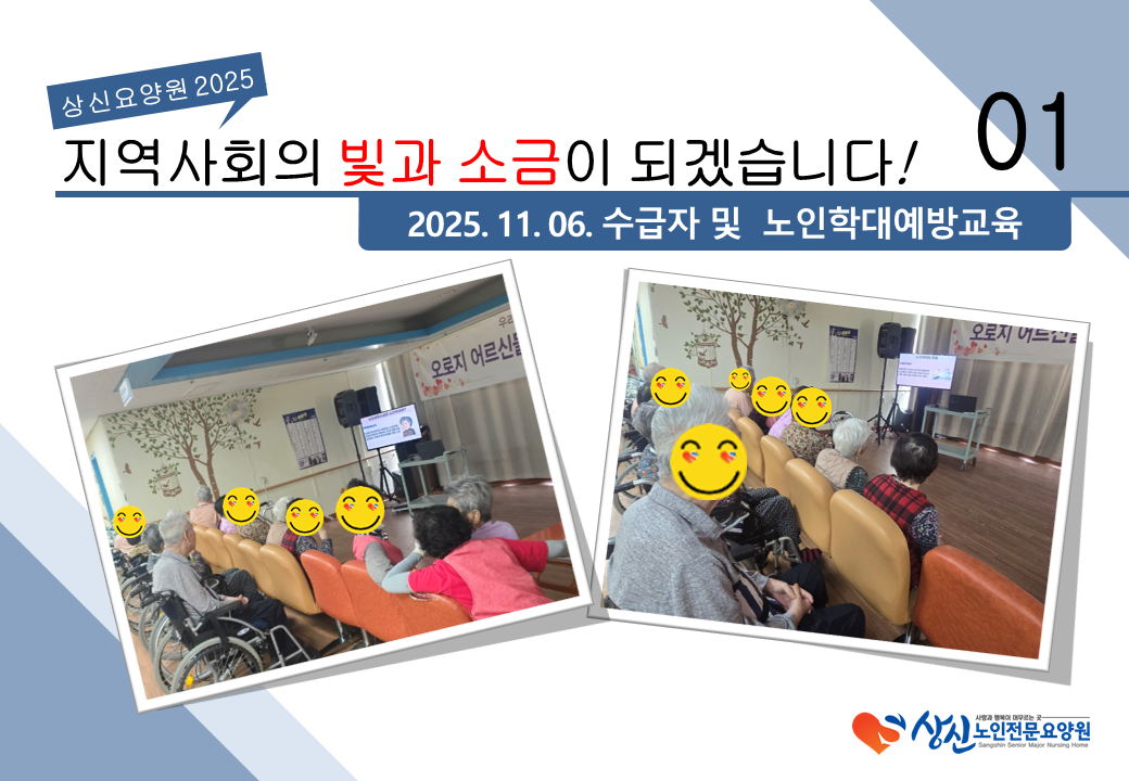 상신노인전문요양원은 어르신이 오케이 하실때까지 항상 어르신만을 생각하는 요양원이 되겠습니다.