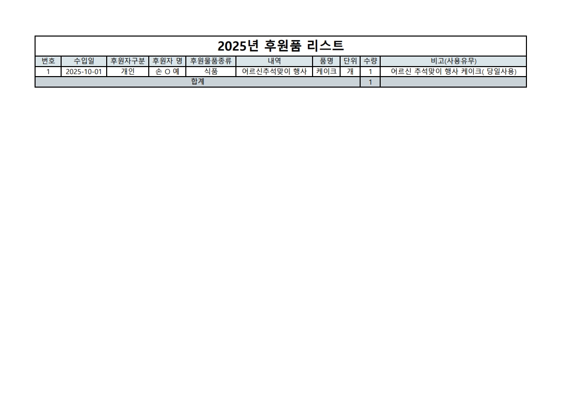 2025년 후원금품 사용내역 공개