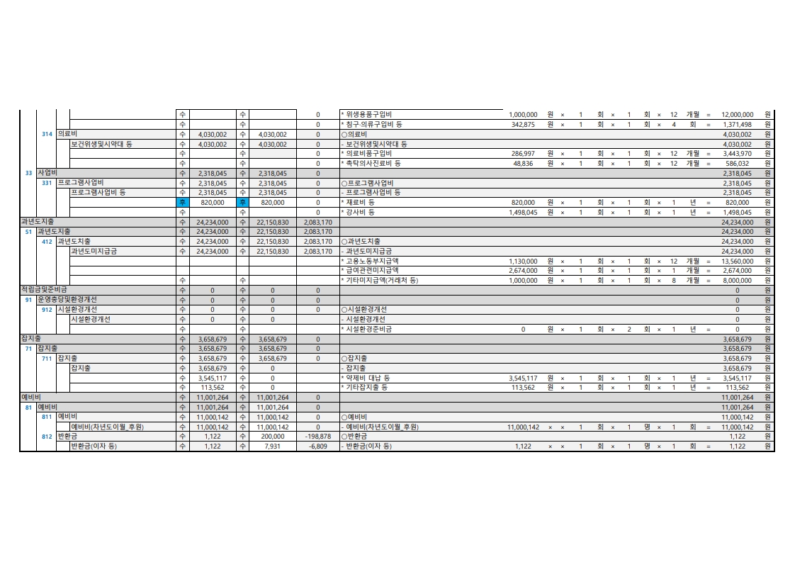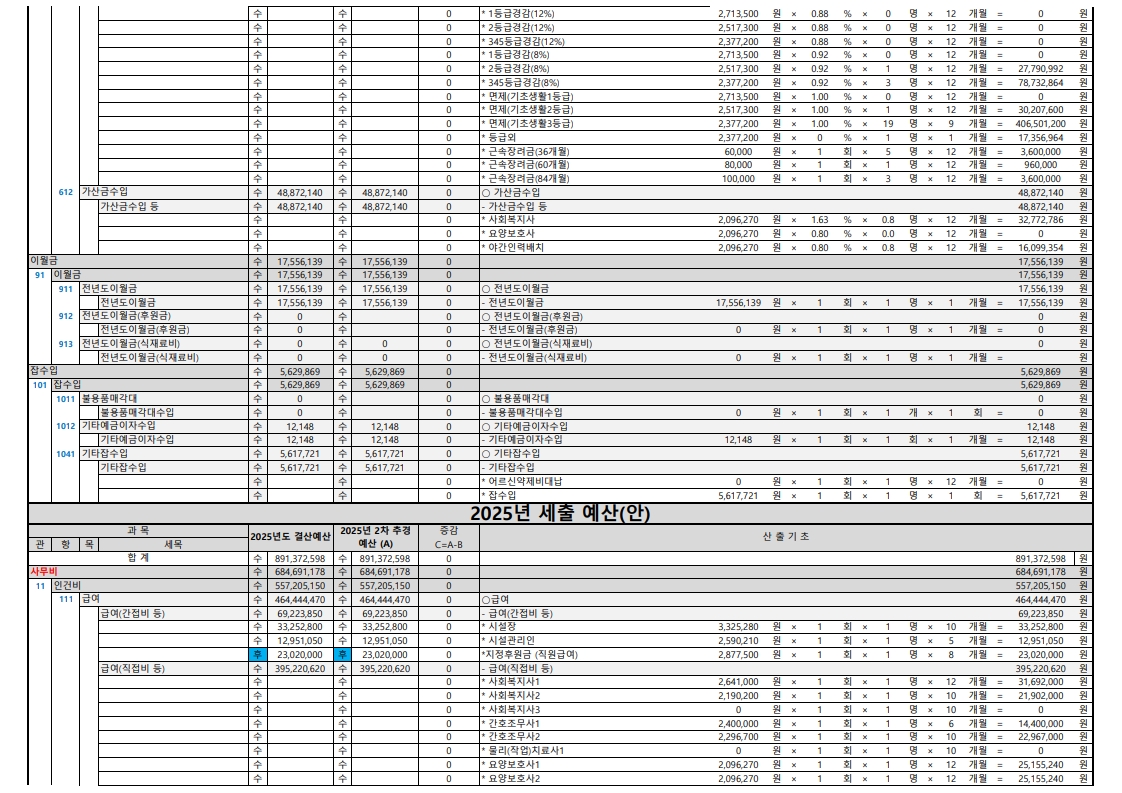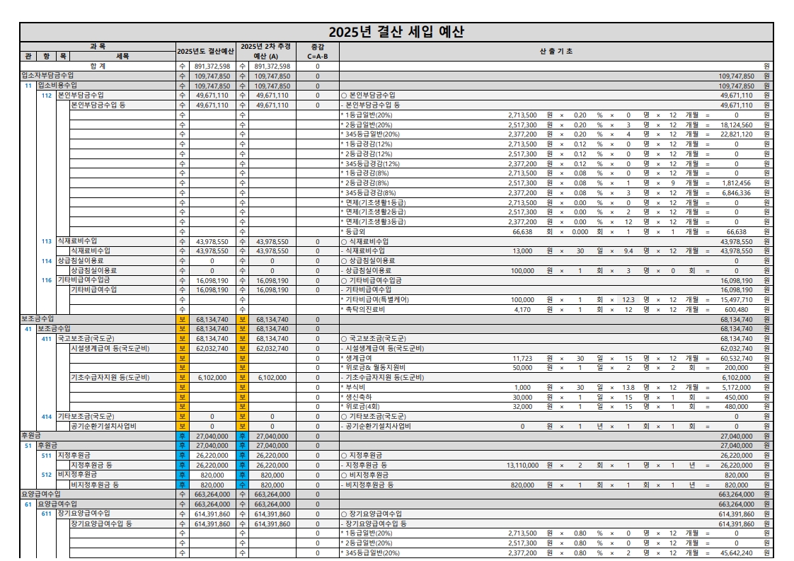 2025년도 세입세출 총괄표 및 세입세출 상세내역