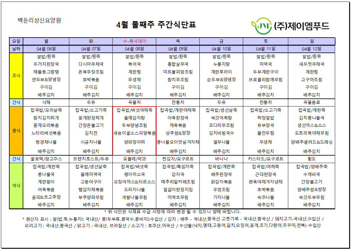 2026년 4월 둘째주 식단